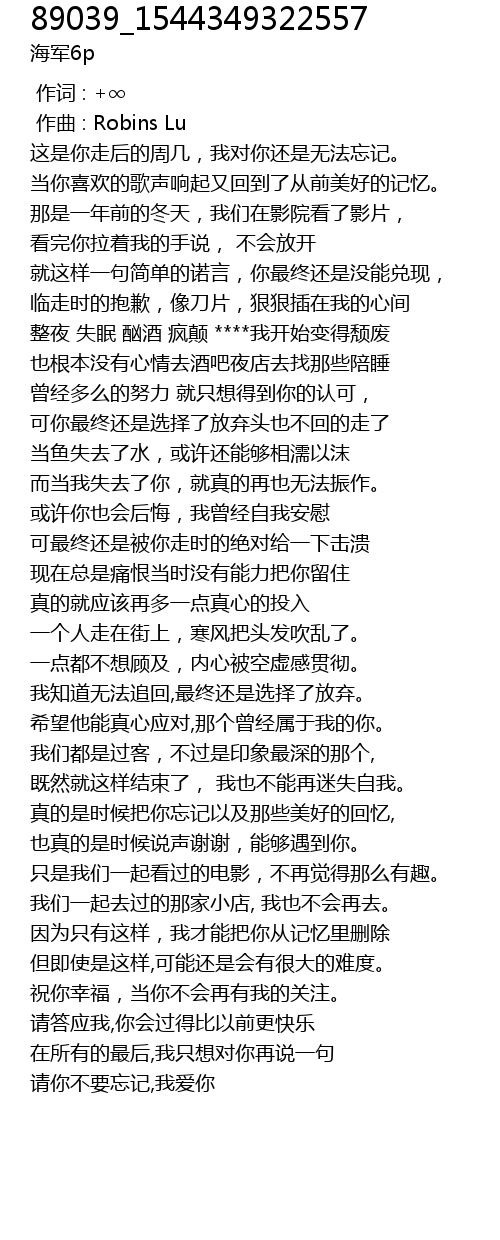 | [00:27.375] | 这是你走后的周几,我对你还是无法忘记。 |