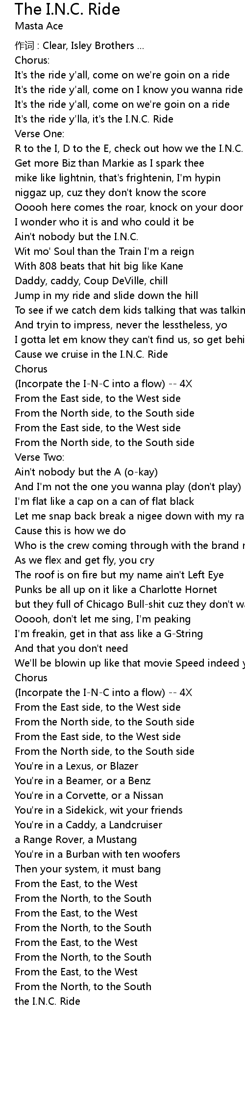 | It' s the ride y' lla, it' s the I. N. C. Ride | |