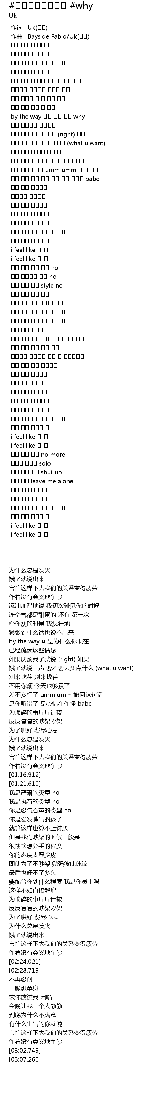 | [00:00.000] | 作词 : Uk(정욱) |