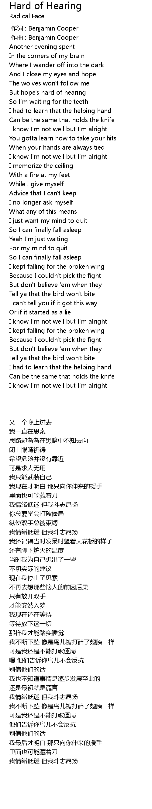 | [00:00.000] | 作词 : Benjamin Cooper |