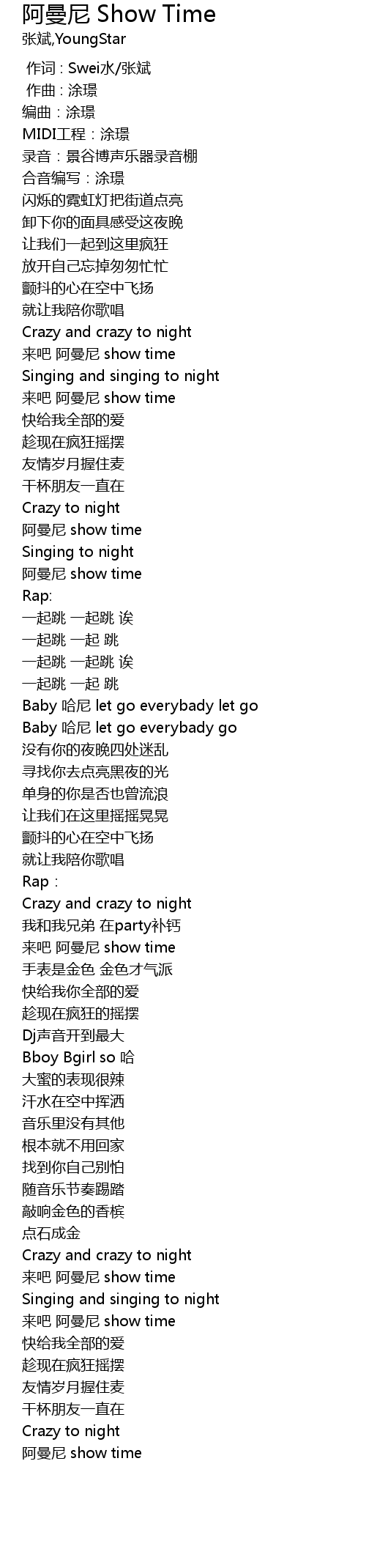 | [01:05.929] | 来吧 阿曼尼 show time |