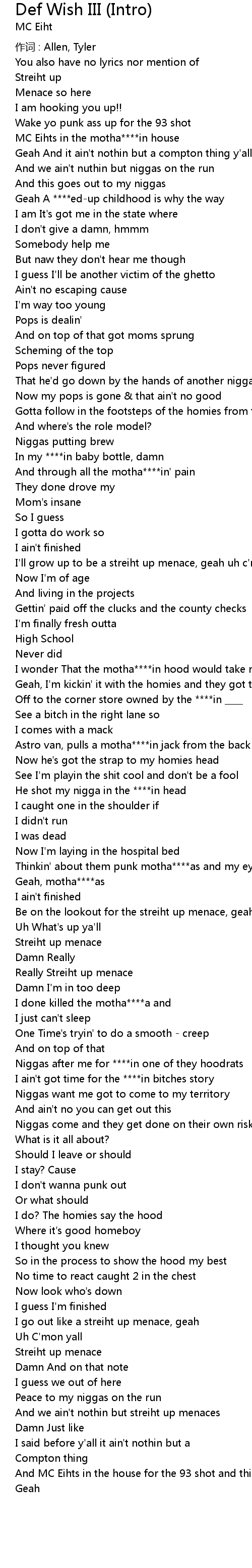 | Song | Def Wish III (Intro) |