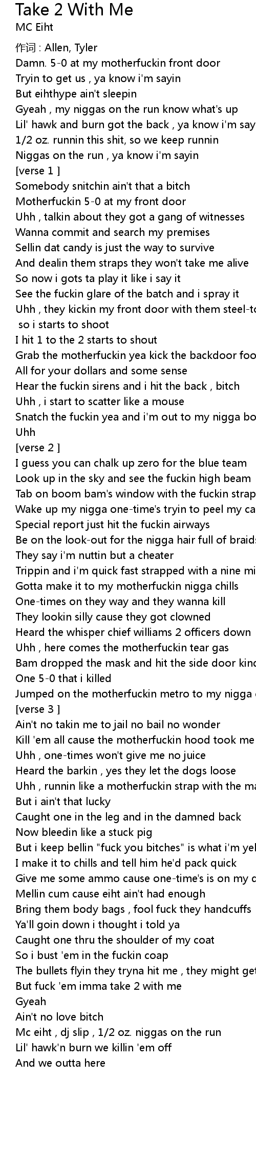 | Hear the fuckin sirens and i hit the back , bitch | |