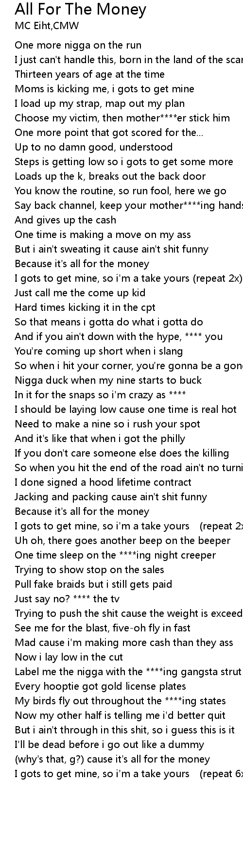 | I gots to get mine, so i'm a take yours (repeat 6x) |