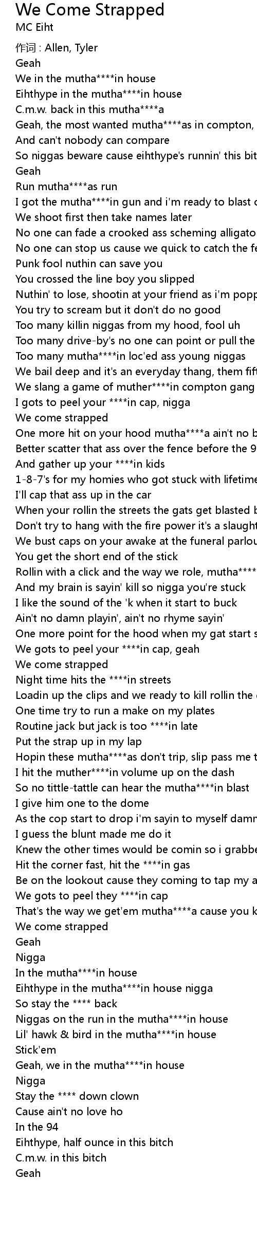 | Geah, the most wanted mutha****as in compton, y'know i'm sayin? | |