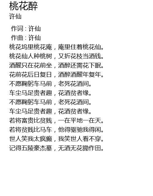 | [00:44.446] | 桃花坞里桃花庵,庵里住着桃花仙。 |