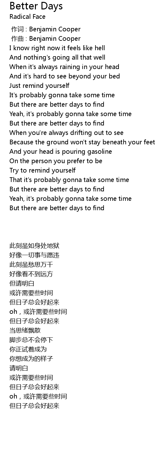| [00:58.50] | But there are better days to find |