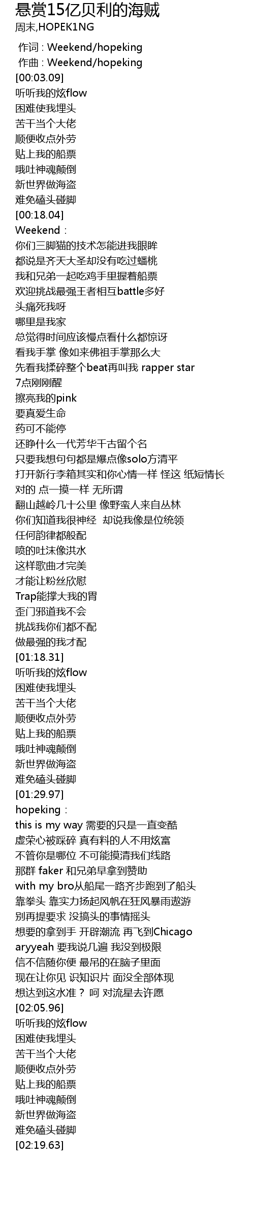 | [00:01.000] | zuò qǔ : Weekend hopeking |