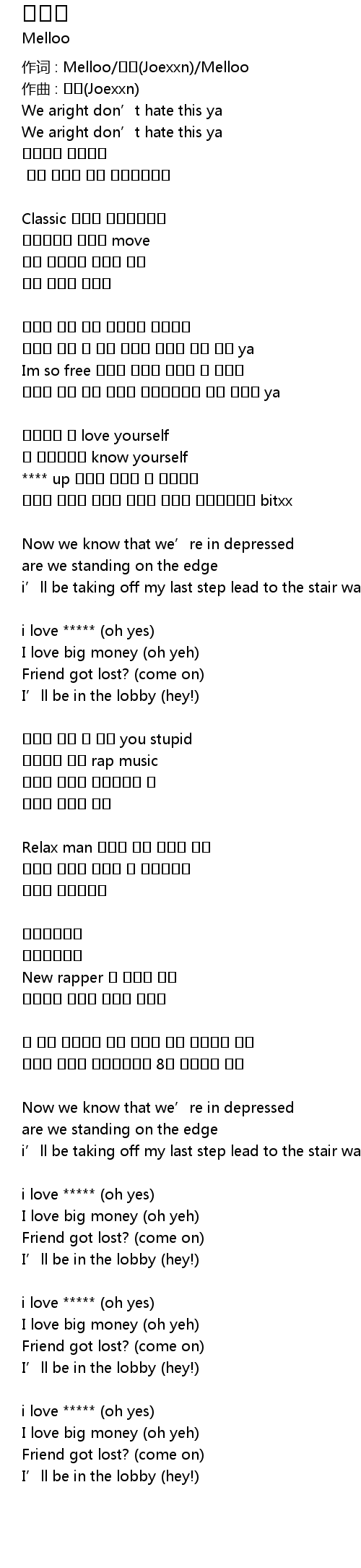 | 作词 : Melloo/조한(Joexxn)/Melloo | |