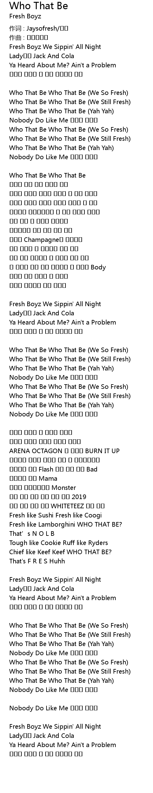 | Who That Be Who That Be We So Fresh | |