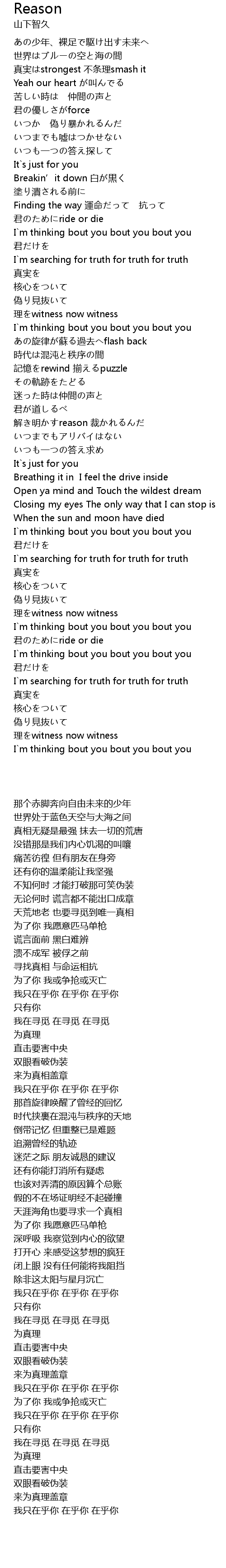 | [00:19.58] | 真実はstrongest 不条理smash it |