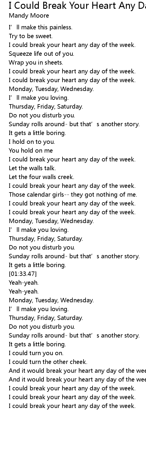 | [01:49.65] | Monday, Tuesday, Wednesday. |