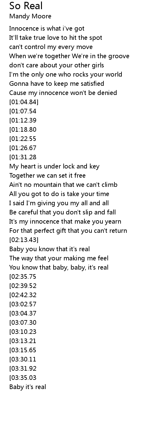 [02:50.60][01:26.67] keeps me hanginn' on Baby it's real
