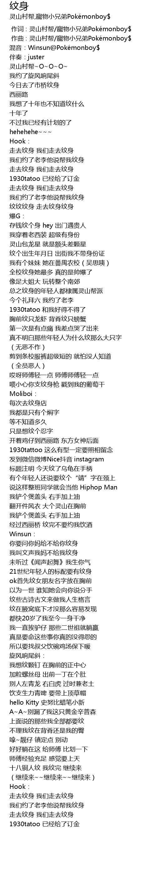 | [00:30.286] | 走去纹身 我们走去纹身 |