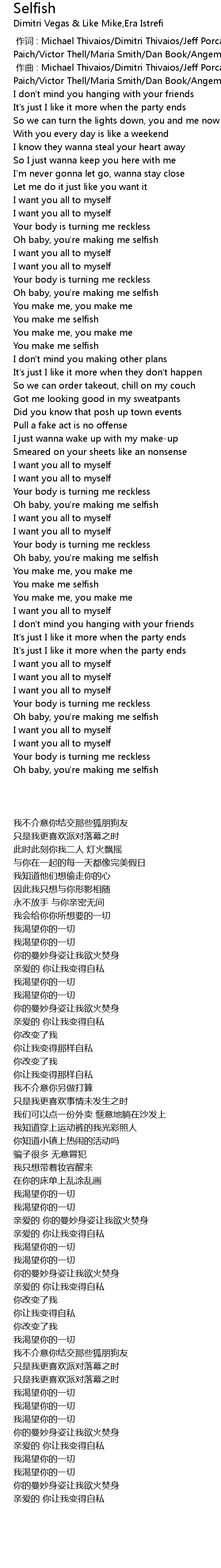 | [01:40.843] | Oh baby, you' re making me selfish |