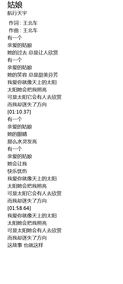 | [01:35.82] | 我爱你就像天上的太阳 |