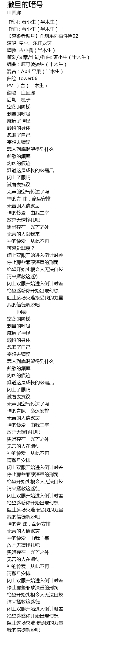 | [00:05.437] | 策划/文案/作词/作曲: 著小生(半木生) |