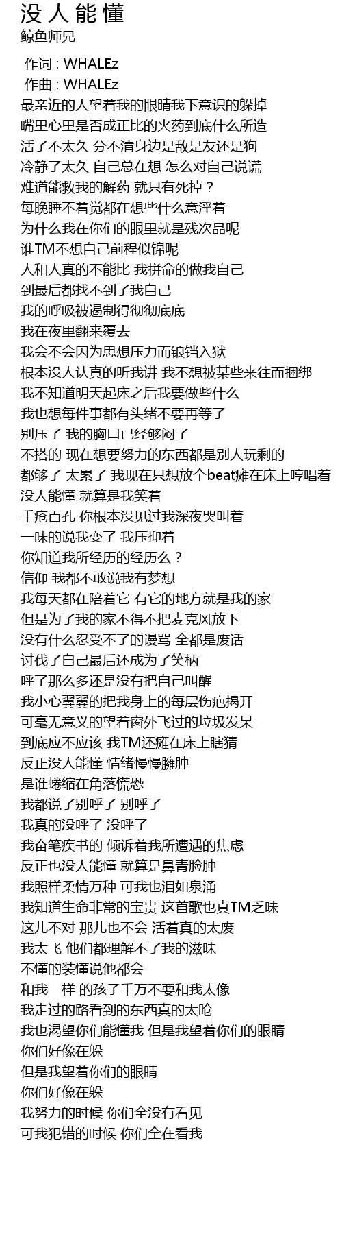 | [02:43.357] | 我也渴望你们能懂我 但是我望着你们的眼睛 |