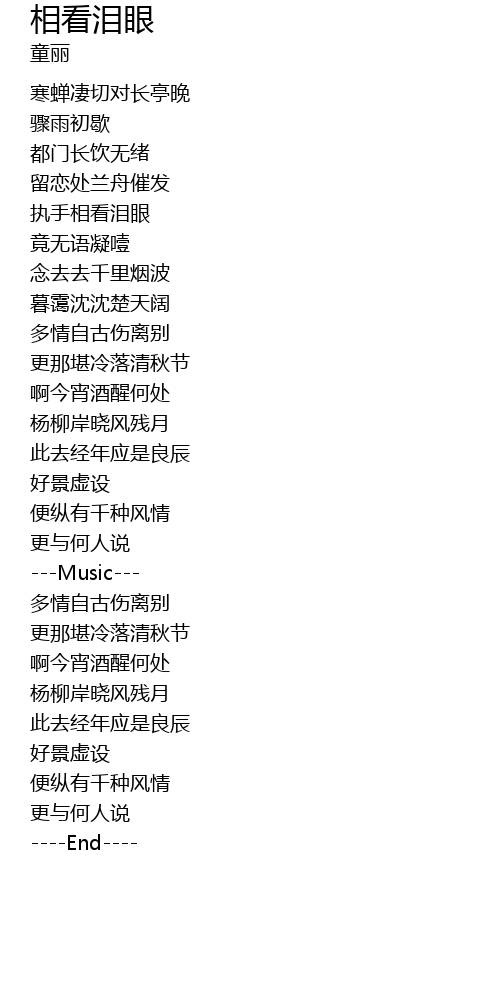 | [00:44.92] | 寒蝉凄切对长亭晚 |