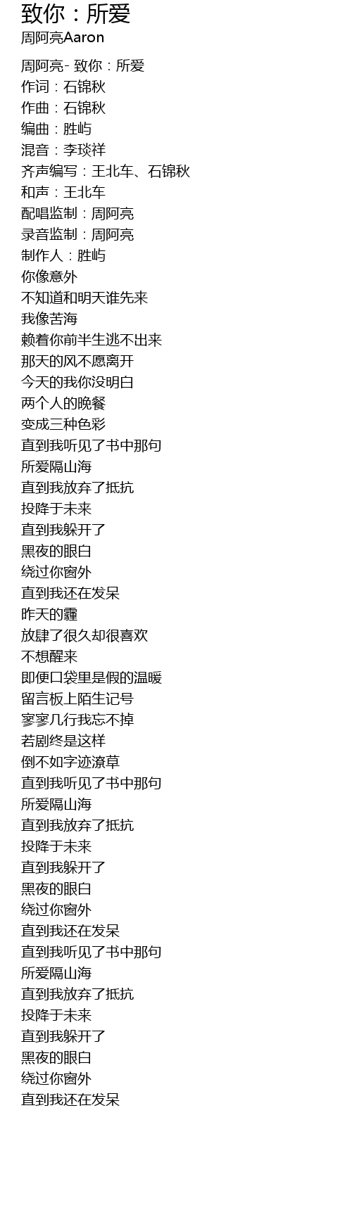 | [00:02.693] | 周阿亮- 致你:所爱 |
