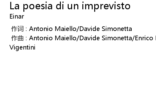 | [00:00.000] | 作曲 : Antonio Maiello/Davide Simonetta/Enrico Palmosi/Andrea Vigentini |