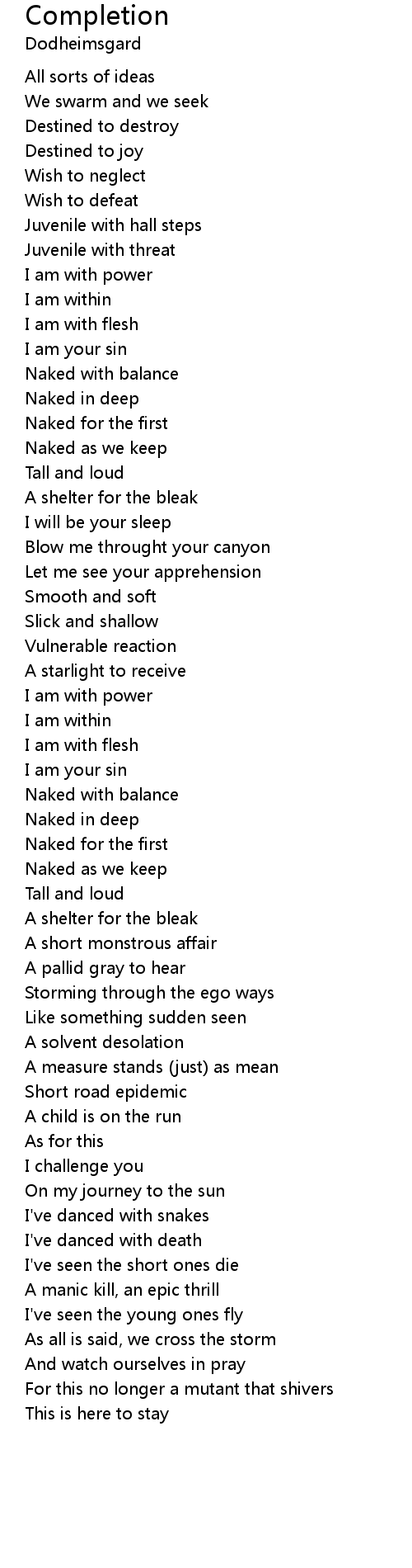 Completion Lyrics