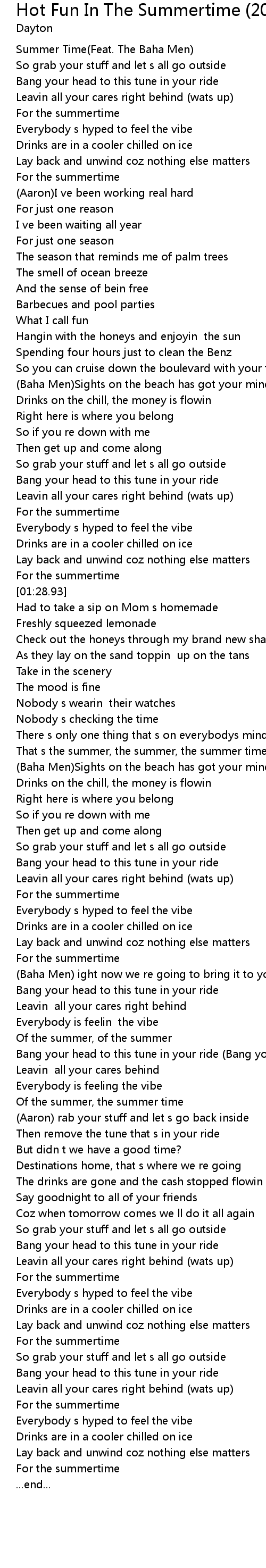 | [00:04.77] | Summer Time(Feat. The Baha Men) |