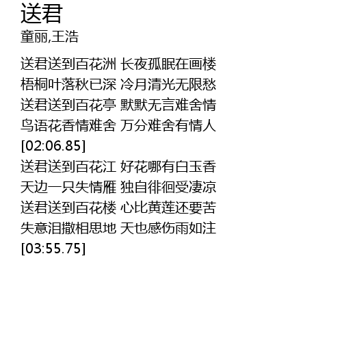 | [00:52.76] | 送君送到百花洲 长夜孤眠在画楼 |