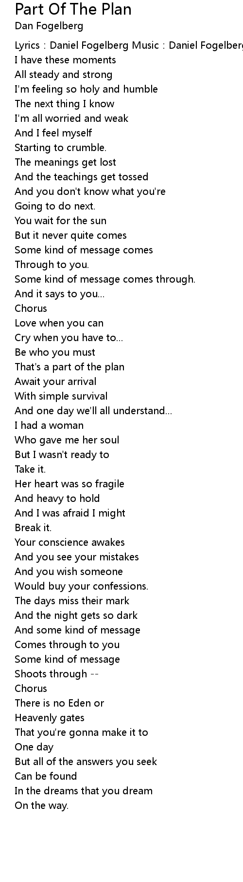 | Song | Part Of The Plan |
