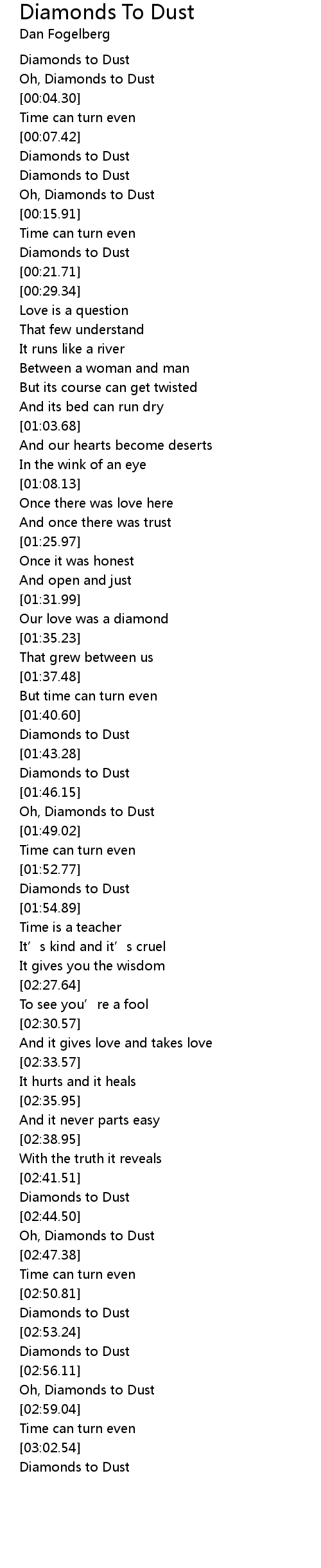 | [02:57.30] | Oh, Diamonds to Dust |