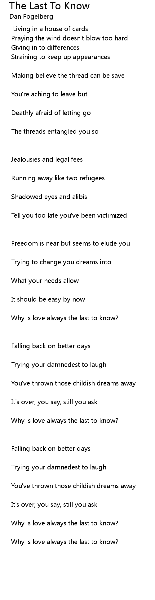 Why is love always the last to know? |