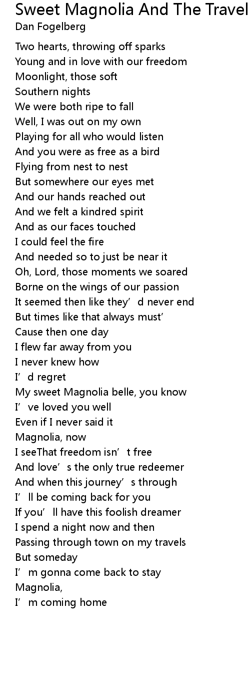 | Song | Sweet Magnolia And The Travelling Salesman |