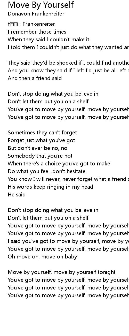 | Move by yourself, move by yourself tonight | |