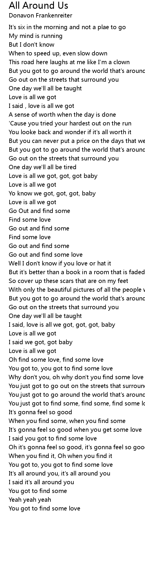 But you got to go around the world that's around you |