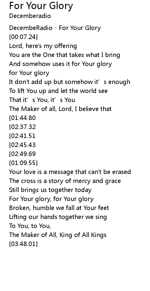 | [00:01.13] | DecembeRadio - For Your Glory |
