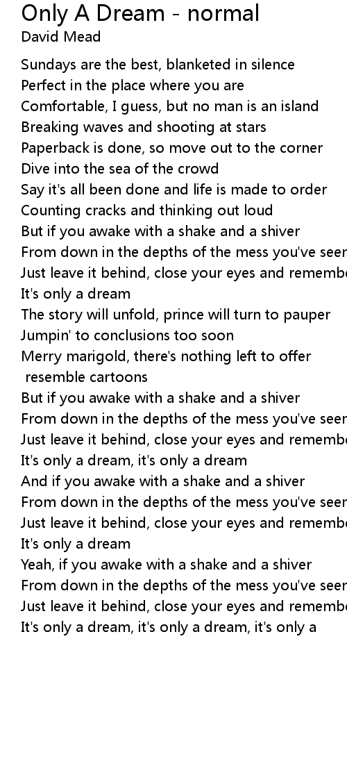 It's only a dream, it's only a dream, it's only a |