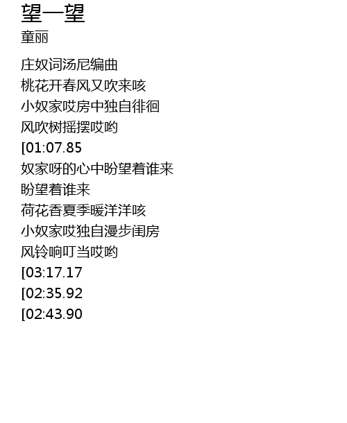 | [03:20.90][03:17.17][02:32.17][02:28.41] | 望一望呀望一望 |