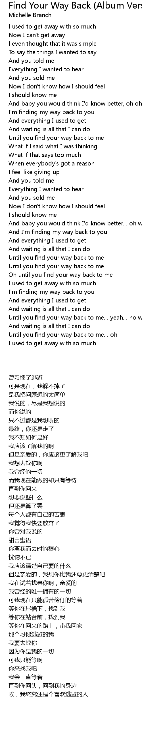 | [02:34.36] | Oh until you find your way back to me |