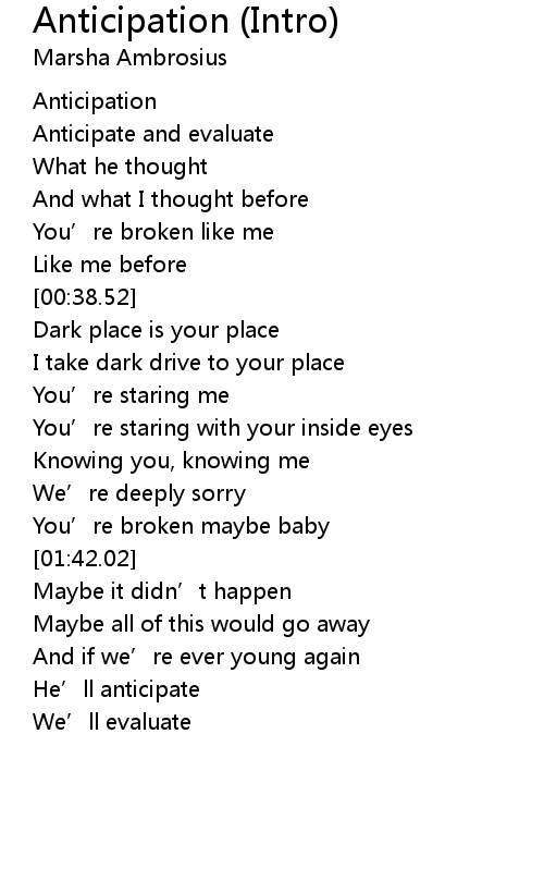 | [00:00.00] | Anticipation |