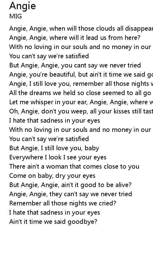 | Oh, Angie, don't you weep, all your kisses still taste sweet | |