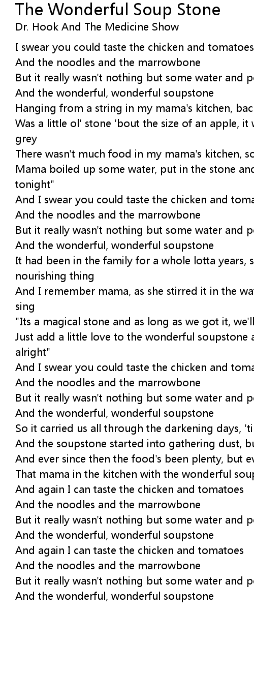 That mama in the kitchen with the wonderful soupstone, drifts across my mind |