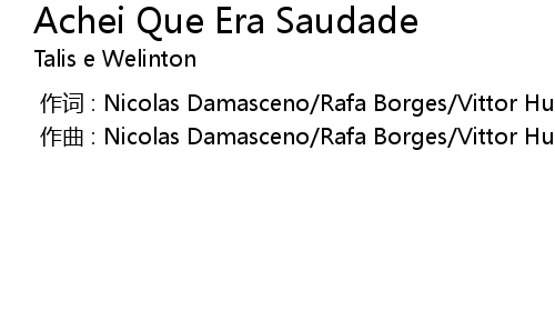 | [00:00.000] | zuo qu : Nicolas Damasceno Rafa Borges Vittor Hugo Gabriel Vittor |