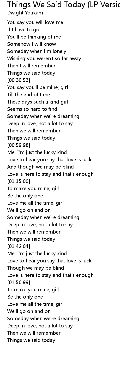 Things We Said Today (LP Version) Lyrics