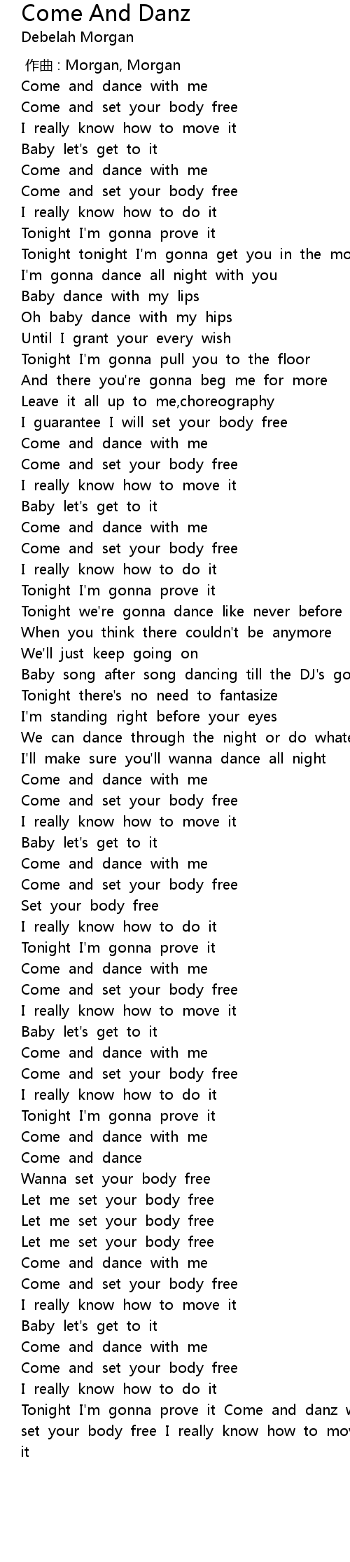 | [03:18.442] | Tonight I'm gonna prove it Come and danz with me Come and set your body free I really know how to move it Baby let's get to it |