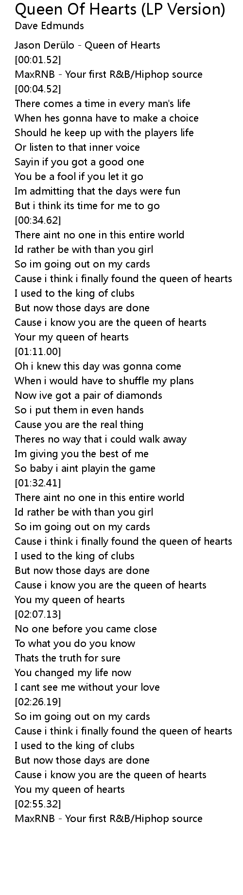 | [02:47.17] | Cause i know you are the queen of hearts |