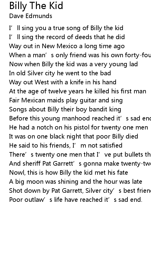 | I’ll sing you a true song of Billy the kid | |