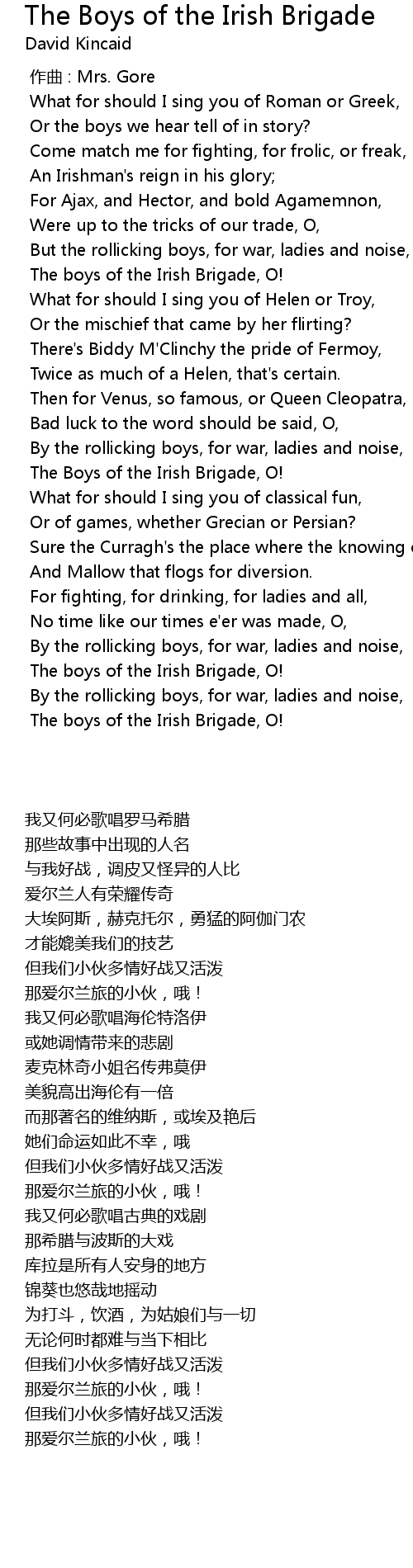 | [02:40.405] | The boys of the Irish Brigade, O! |