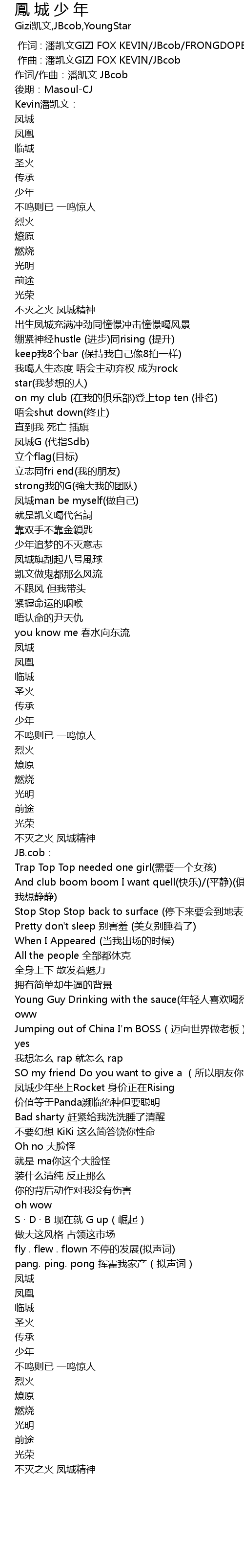 | [00:00.000] | 作词 : 潘凯文GIZI FOX KEVIN/JBcob/FRONGDOPE凤都 |