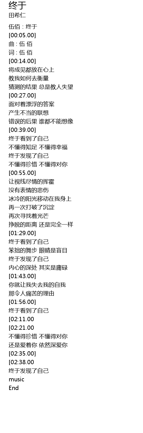 | [02:27.00][02:21.00][02:14.00] | 终于发现了自己 |
