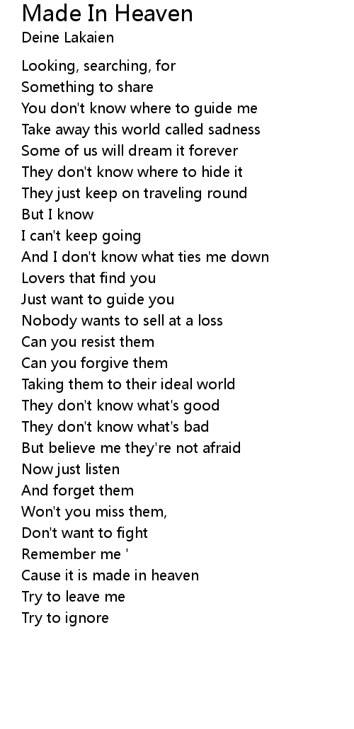 Cause it is made in heaven |
